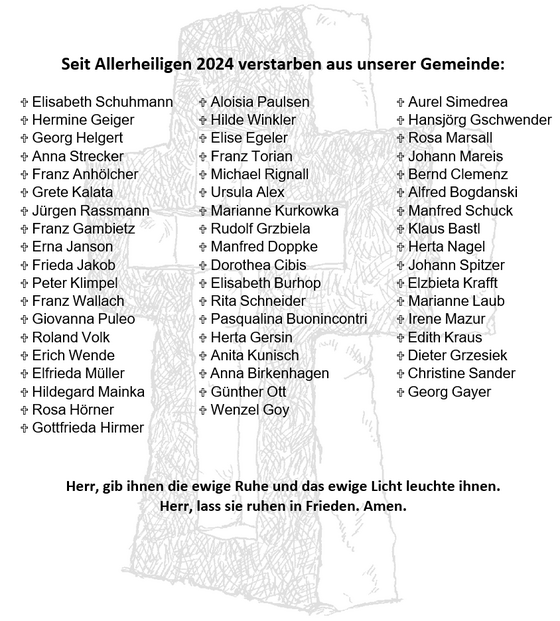 Am Sonntag, 2.11.2025. findet die Eucharistiefeier mit Totengedenken um 9:30 Uhr in der